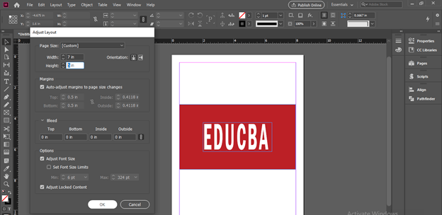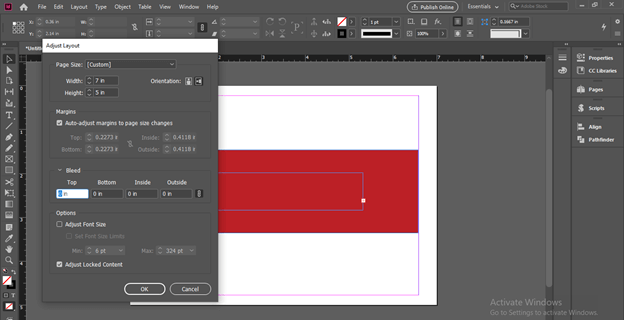 Now I will again open Adjust Layout box. If you want you can also adjust the bleed size when you change the size of the page.