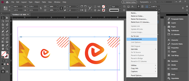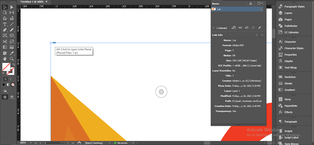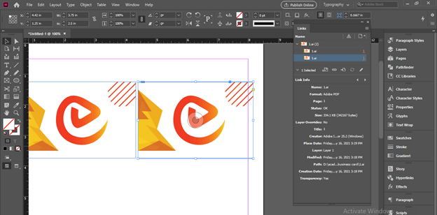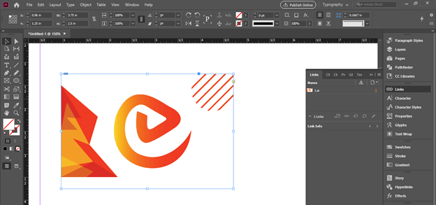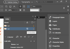 Now go to the Links panel of this software. In Typography workspace mode, we can find this panel at the right side of the user screen in the panels section.