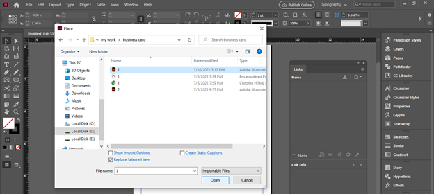 A Place dialog box will be open for choosing the desired file. I will choose this ai file from its saved location. You can take anyone of your own image file to learn about this.