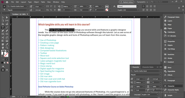 Now navigate the character panel in your user screen of InDesing. I have a Character panel here in the panel’s section of this software.