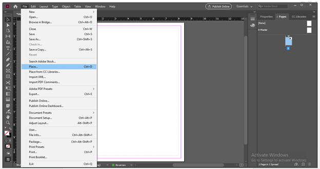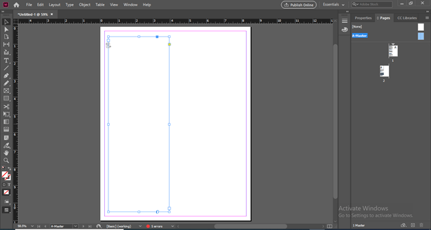 I will select the A Mater page in the Pages panel by making double click on it.