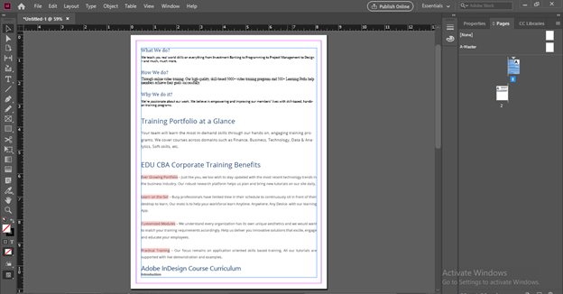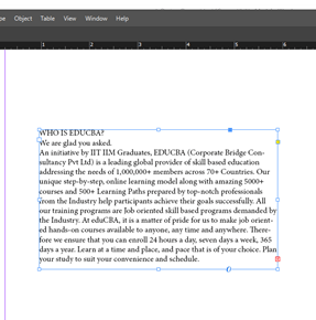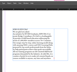 Your chosen text content will come on the mouse cursor, and you when you make a click within the drawn text box, InDesign will automatically adjust the whole text content into a number of pages according to the length of text content.