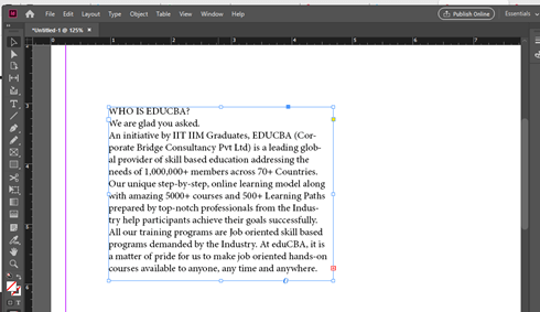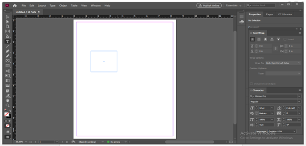Now again, take the type tool and drag a text box on the document area.