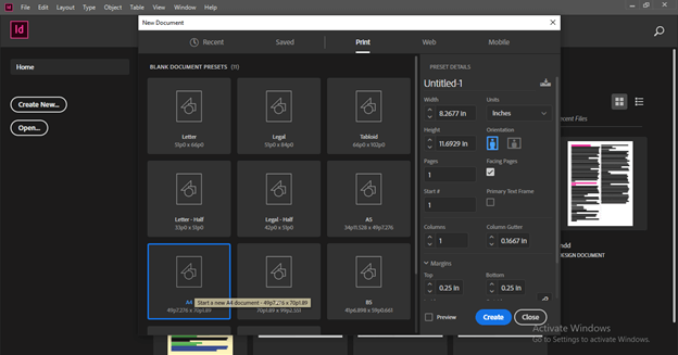 For creating a resume tamplete in this software we first analyze that the resume template which we are going to desing is related to what type of professional person and what is its working area. Here i will create a resume template for a Graphics Designer. So let us take a A4 size doucment page which is generally common page size for resume template.
