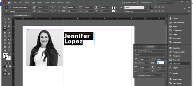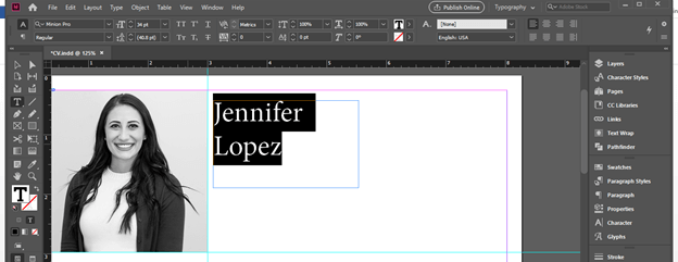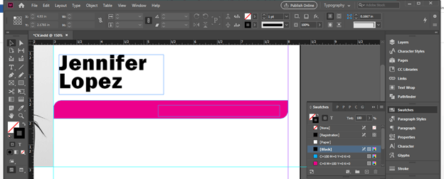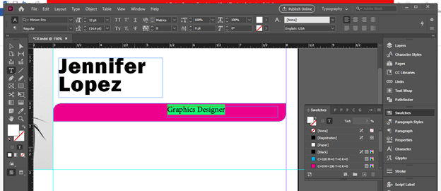 Now I will take Type tool from tool panel and draw a text frame here. Type your professional name here. I will type this name.