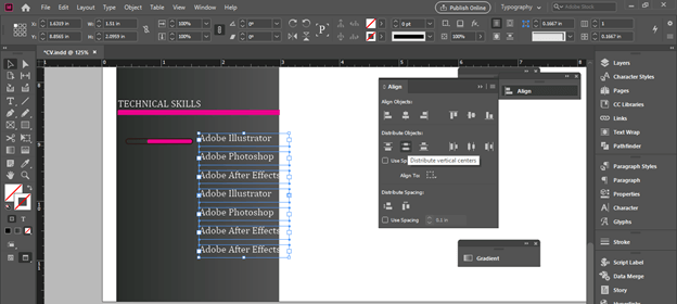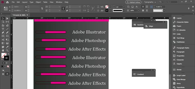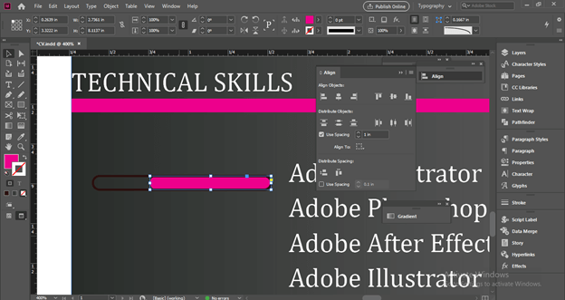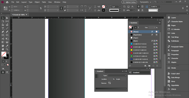 Below this I will create a rectangle again and add a gradient color to it. I am creating these shapes just for showing you that you can use any type of design element for making your resume design layout effective.