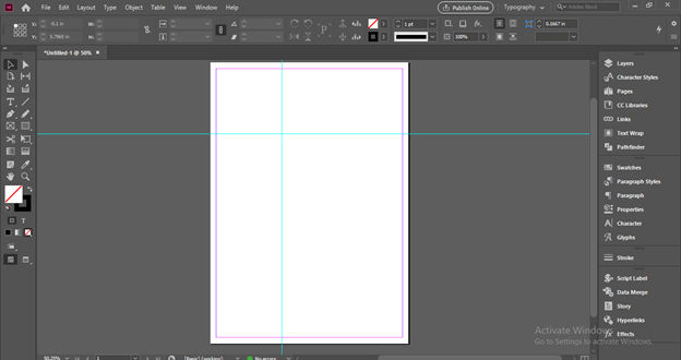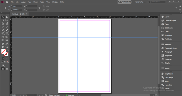 Now I will first divide sections for different purpose. I will drag a vertical ruler and set it at the 2.5 on ruler scale.