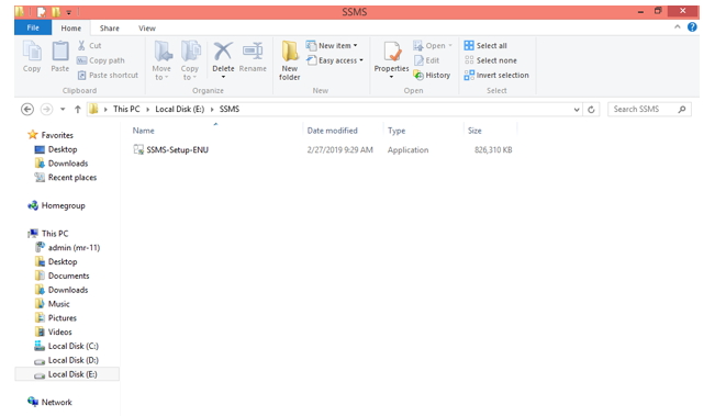 Step 1: Next, for the installation, go to the folder where “SSMS-Setup-ENU.exe” is there and then double click the exe file to start the installation.