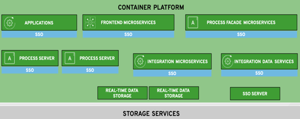 The other component of integration architecture is the container platform. The container platform is used to provide one common environment for the developers so that they can manage the applications, services, security, process integration and other integration points using one common platform.