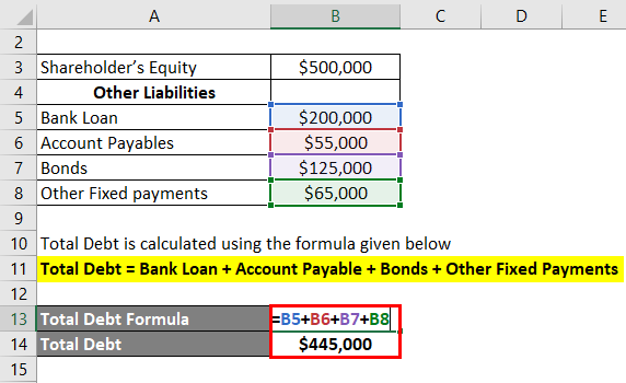 Total Debt = Bank Loan + Account Payable + Bonds + Other Fixed Payments