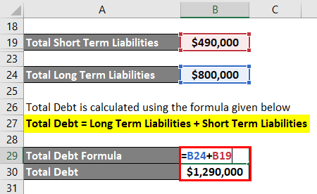 Total Debt = Long Term Liabilities + Short Term Liabilities