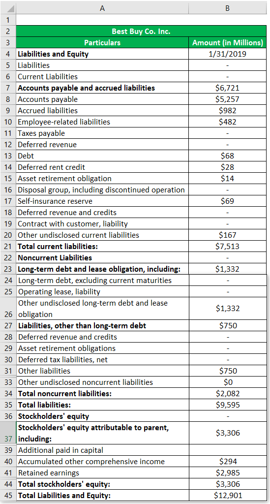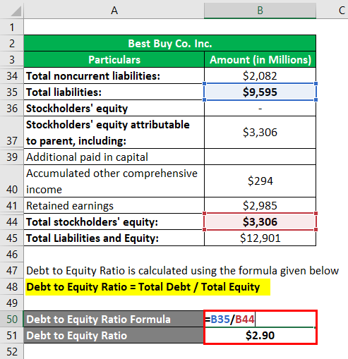 The following information on best buy co.inc company is given below to calculate the debt to equity ratio.