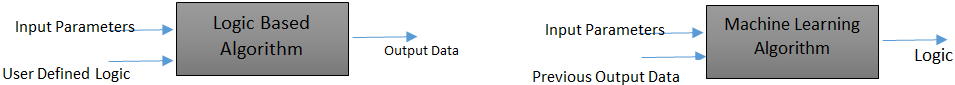 For a logic-based algorithm, flow is well-defined and known in advance; however, there are several real-life scenarios (such as image classification) where logic can’t be defined. In such cases, Machine learning has proven to be extremely useful. Machine learning techniques take input parameters & expected reference output data and generate logic which is then deployed into production.