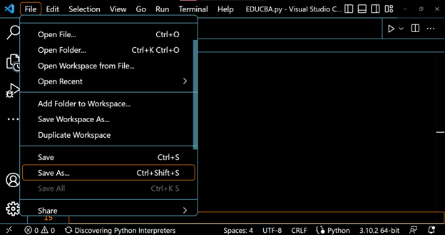 Step #5: Save the file with the .py extension, or select ‘Python’ in ‘Save as type.’
