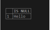 select isnull('Hello','replace value of the NULL')AS "IS NULL";