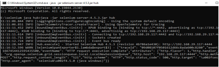 3. By using the command called java -jar selenium-server-4.5.3.jar hub.