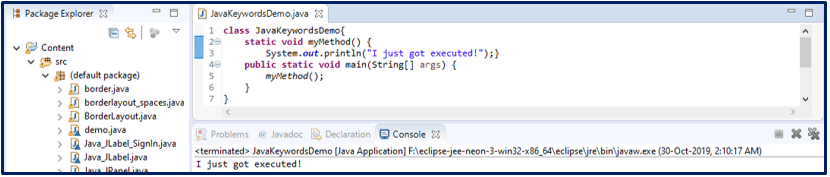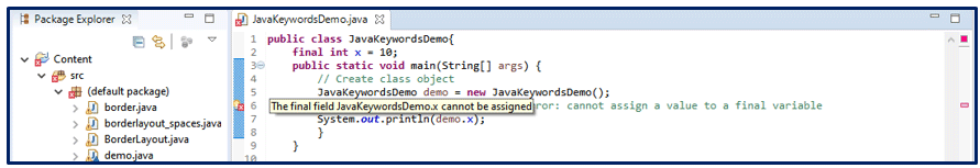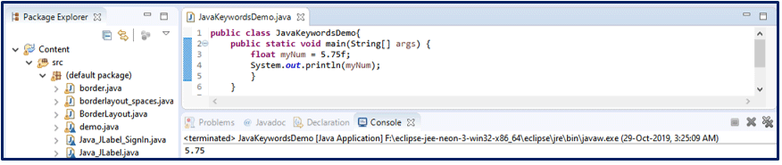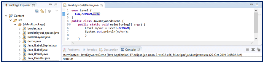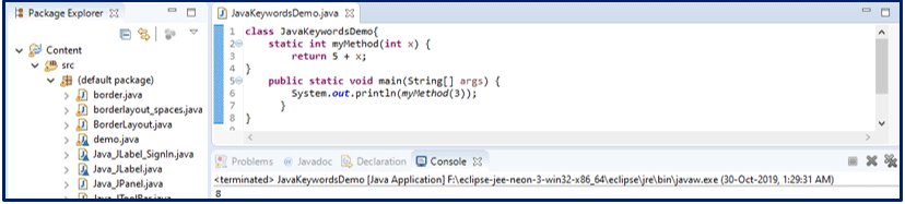 Like any other programming language, a Keyword in Java programming language is a reserved word with a special meaning. Keywords are reserved for internal processes and have some predefined actions. In Java, if the keywords are used otherwise, the program or code will encounter a ‘Compile Time Error.’ For ease of use for the programmer and identification of the Keywords, generally, they are a bit ‘highlighted’ in Java.