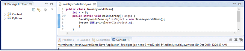 9. Class: The class keyword is used to create a class in java. Everything that runs in Java programming resides inside a class.