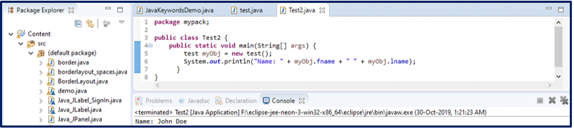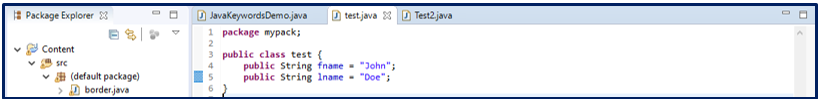 Below is a publicly defined class ‘test.java’ and another class, class ‘Test2.java’, access it.
