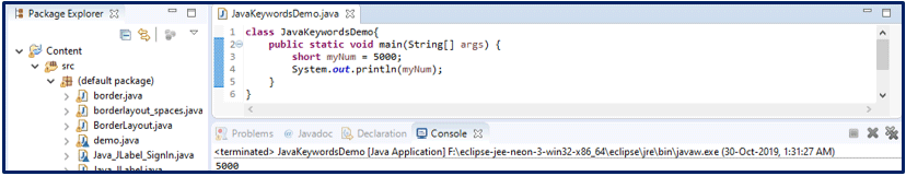 27. Long: The ‘long’ keyword is again one of the data types for holding whole numbers. They range from -9223372036854775808 to 9223372036854775808. The whole number value should end with an ‘L’.