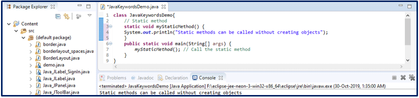 We have tried to list the important keywords in use currently in Java below in alphabetical order. You can also observe the working of every keyword by following the given examples for the same. Let’s see these keywords one by one.