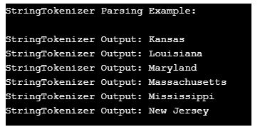 System.out.println("StringTokenizer Parsing Example: \n");