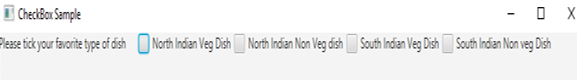 CheckBox cb1 = new CheckBox("North Indian Veg Dish");