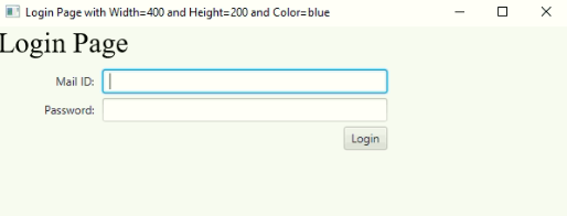 outputStage.setTitle("Login Page with Width=400 and Height=200 and Color=blue");