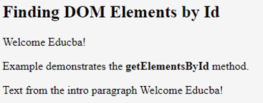 This program illustrates the DOM model method of getElementbyId() for displaying the following output.