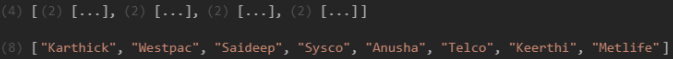 // [['Karthick', 'Westpac'], ['Saideep', 'Sysco'], ['Anusha', 'Telco'], ['Keerthi', 'Metlife']]