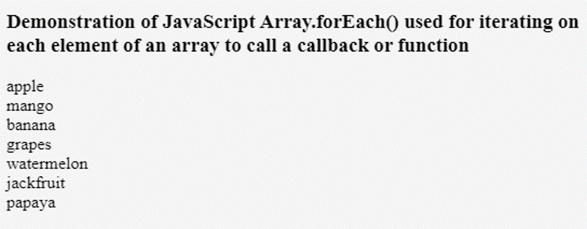 <h3>Demonstration of JavaScript Array.forEach() used for iterating on each element of an array to call a callback or function</h3>