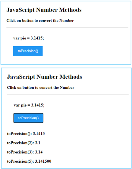 document.getElementById("result1").innerHTML = "toPrecision(): " + pie.toPrecision();