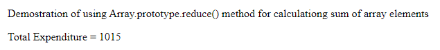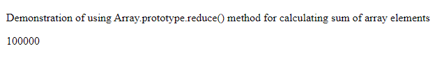 <p>Demonstration of using Array.prototype.reduce() method for calculating sum of array elements</p>