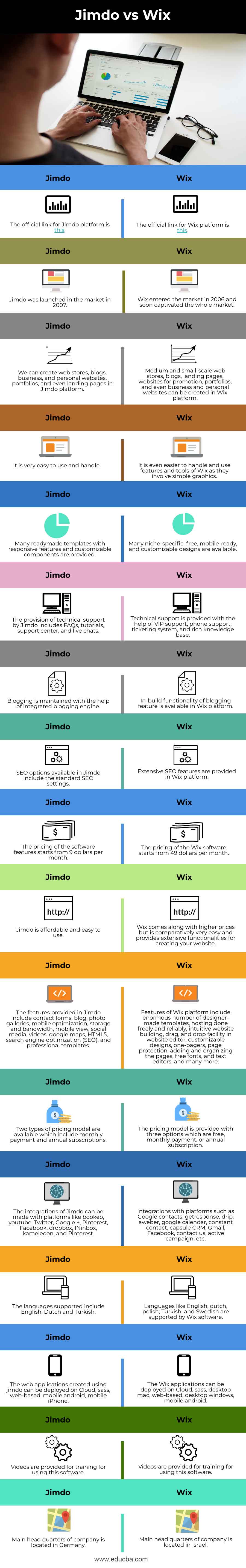 This is a guide to Jimdo vs Wix. Here we discuss the Jimbo vs Wix key differences with infographics and comparison table. You may also have a look at the following articles to learn more –
