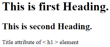 <h1 title = " Title attribute of < h1 > element ">This is first Heading.</h1>