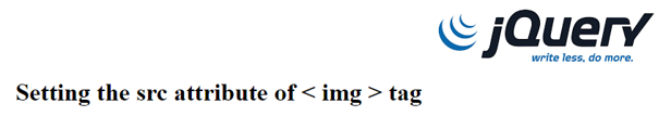 The above element tag name is img, and the attributes are class, id, src, alt, and title; each attribute is assigned some value. These attributes value we can get and change by using jQuery. The jQuery provides two methods, attr() and attr(name, value), to get the attribute value and to set the attribute value of a matched element, respectively.