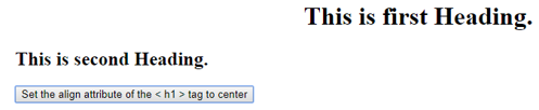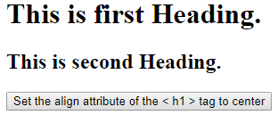 When the button is clicked, the align attribute set to center, and therefore the h1 heading aligns to the center as shown below.