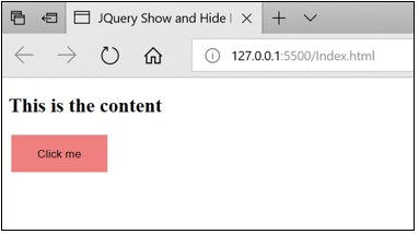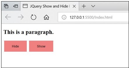 - In this article, we discussed how to use jQuery hide() and show() methods to hide and show the page element after a click event is fired from your web page.