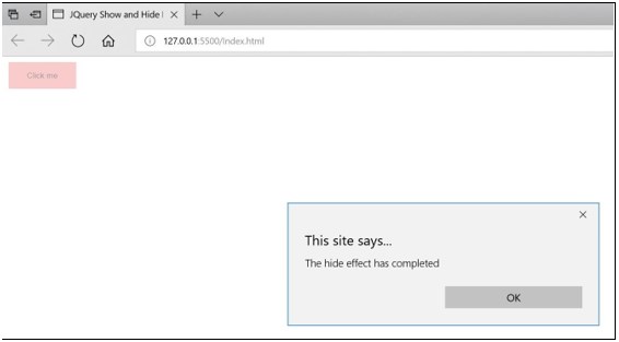 - Only after the “hide” effect is completed, the callback function which is basically an alert function gets executed.