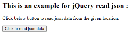 In the above code, the “button” element is created and on click of which the getJSON() function gets execute. The getJSON() function is reading the JSON data from the given URL and displaying the same data by using the code as “$.getJSON( ‘http://time.jsontest.com’, function(data, status) { $(‘#js’).append(‘<h3> The json data details is : </h3>’); });”. So, if we click on the button the click link event trigger and display the read JSON data, as we can see in the above output.