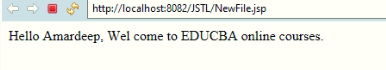 <c:out value="${'Hello Amardeep, Wel come to EDUCBA online courses.'}" />