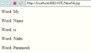 <c:forTokens items="My-Name-is-Nathi-Paramesh" delims="-" var="del">