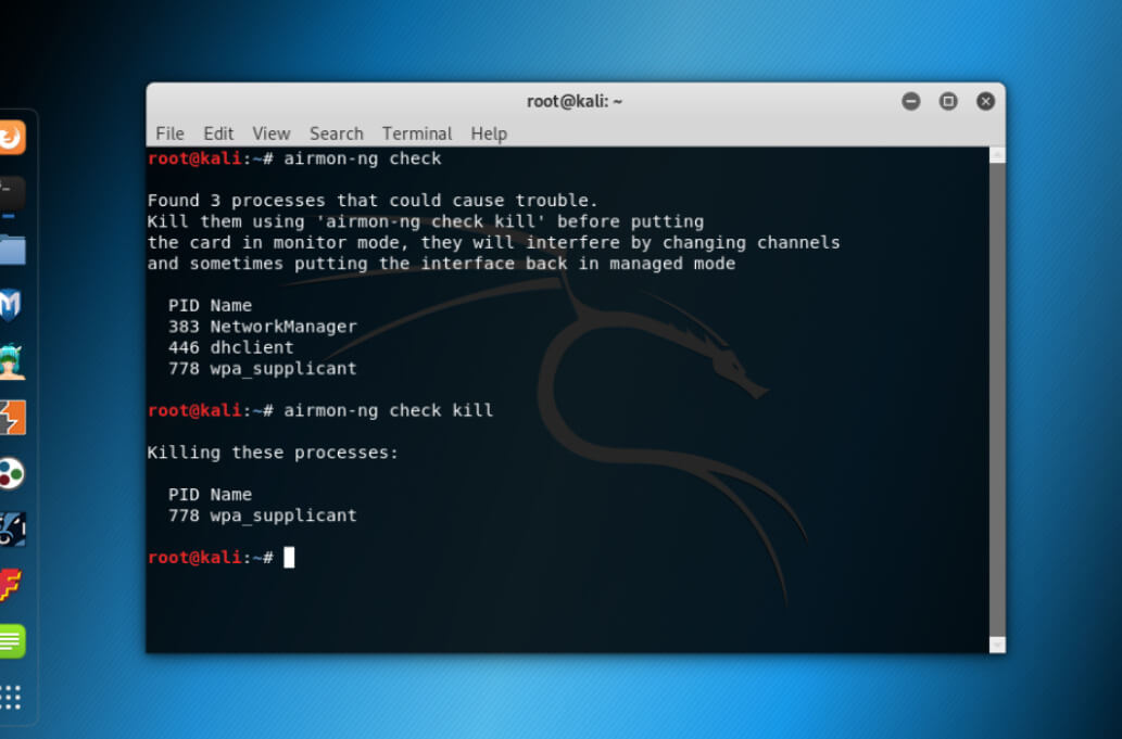 If we want to kill any process that may interfere with using Adapter in Monitor Mode, the below command can be used.