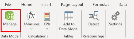 Step 5: Now, the actual work begins. Under the PowerPivot tab in your Excel file, click on Manage.