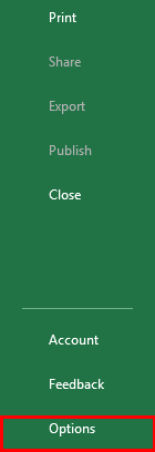 Step 1: Open an Excel file. Click on the File tab on the uppermost ribbon. Go to Options.