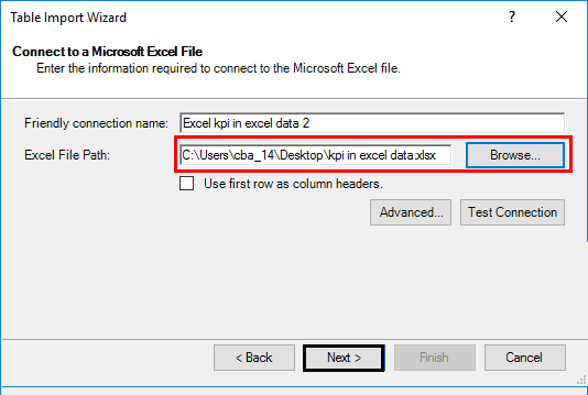 Step 8: Browse the path where your Excel data file is stored and click the Next button to finish the Import.