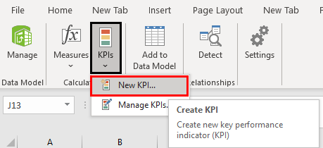 Step 16: Our data is ready for KPIs to be added. Click on the KPIs tab, as shown in the figure. Select the New KPI option.