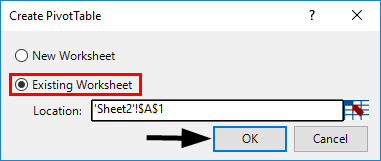Step 11: To create a KPI report, we need to slice and dice our data under the pivot table. Click on the Pivot Table tab under PowerPivot. Once you click it, a new window named Create PivotTable will appear in which you have to select the data from PowerPivot, and it asks you whether you want a pivot table under a new sheet or on the same sheet. I will prefer to go with the same sheet and then will provide the range on which the pivot table should be added. Click OK once done.