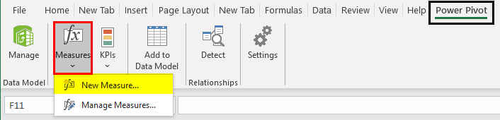 Step 13: We will add a calculated column in the pivot. Select Measures under the Excel sheet. Click on New Measures.