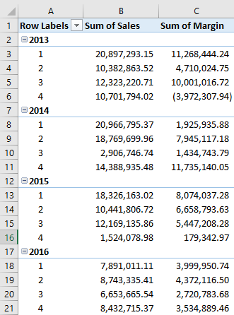 Values: Sum of Sales & Margin